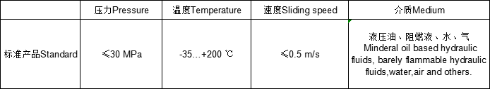 要求活塞桿或活塞密封的場合均可提供-摩擦力小-啟動時不爬行,無粘滯現象-抗磨性及尺寸穩定性好-溝槽簡單且尺寸小-具有潤滑腔
